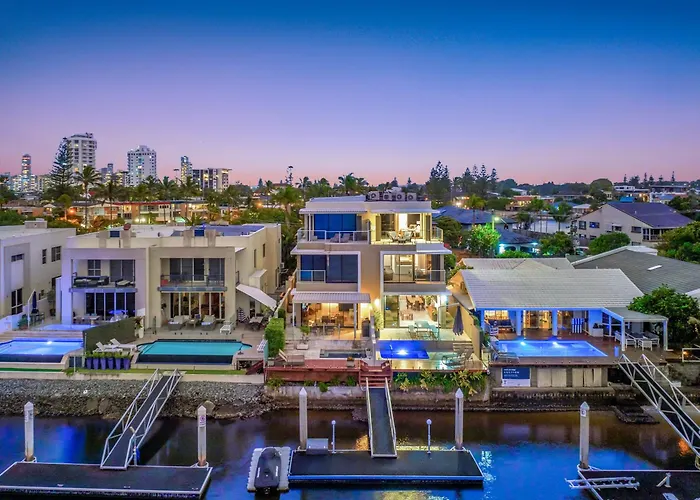 Deze 3-slaapkamer 3 M Luxury Waterfront Villa In Paradise Pets Welcome Gold Coast ligt op 5 minuten loopafstand van Home of the Arts Lake en biedt gasten een zonnedek en een zwembad. Deze 3-badkamer villa beschikt over gratis priveparkeerplaatsen en ligt op 4 km van Sea World.
